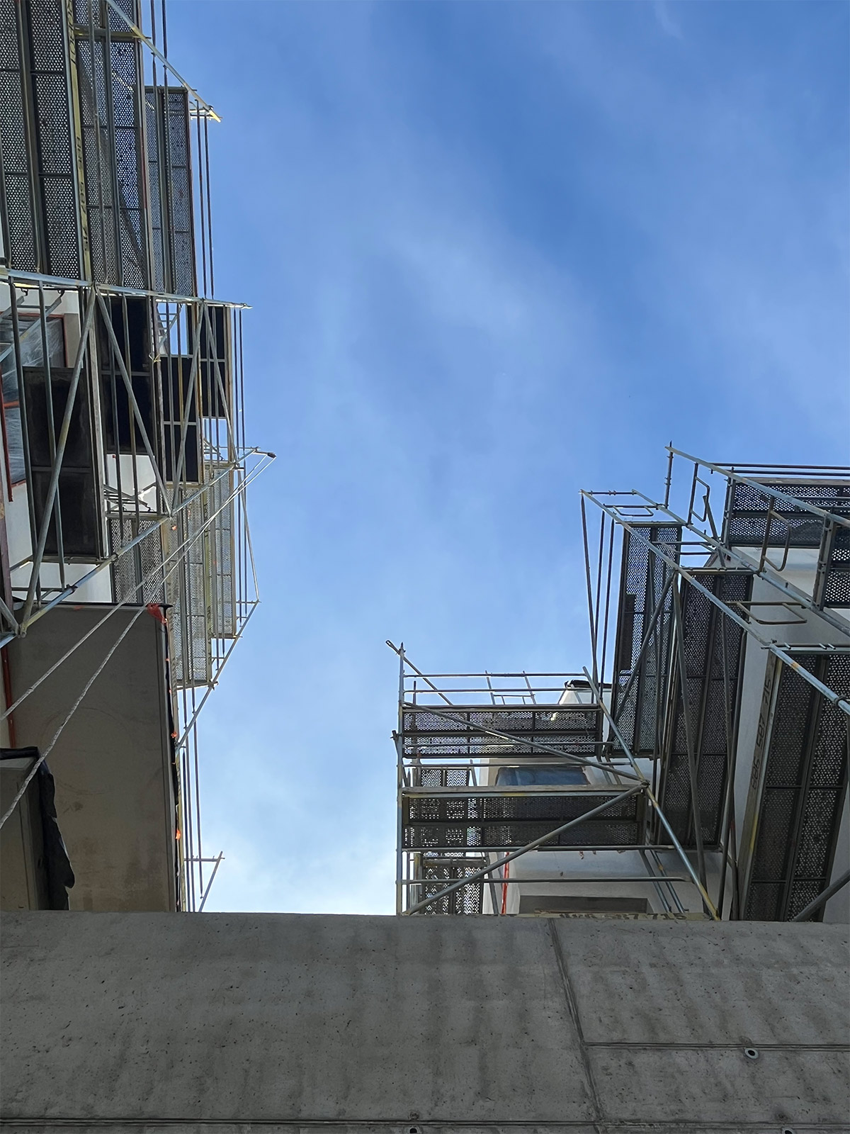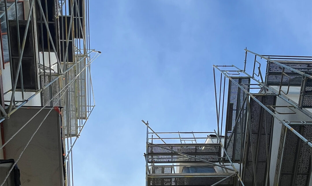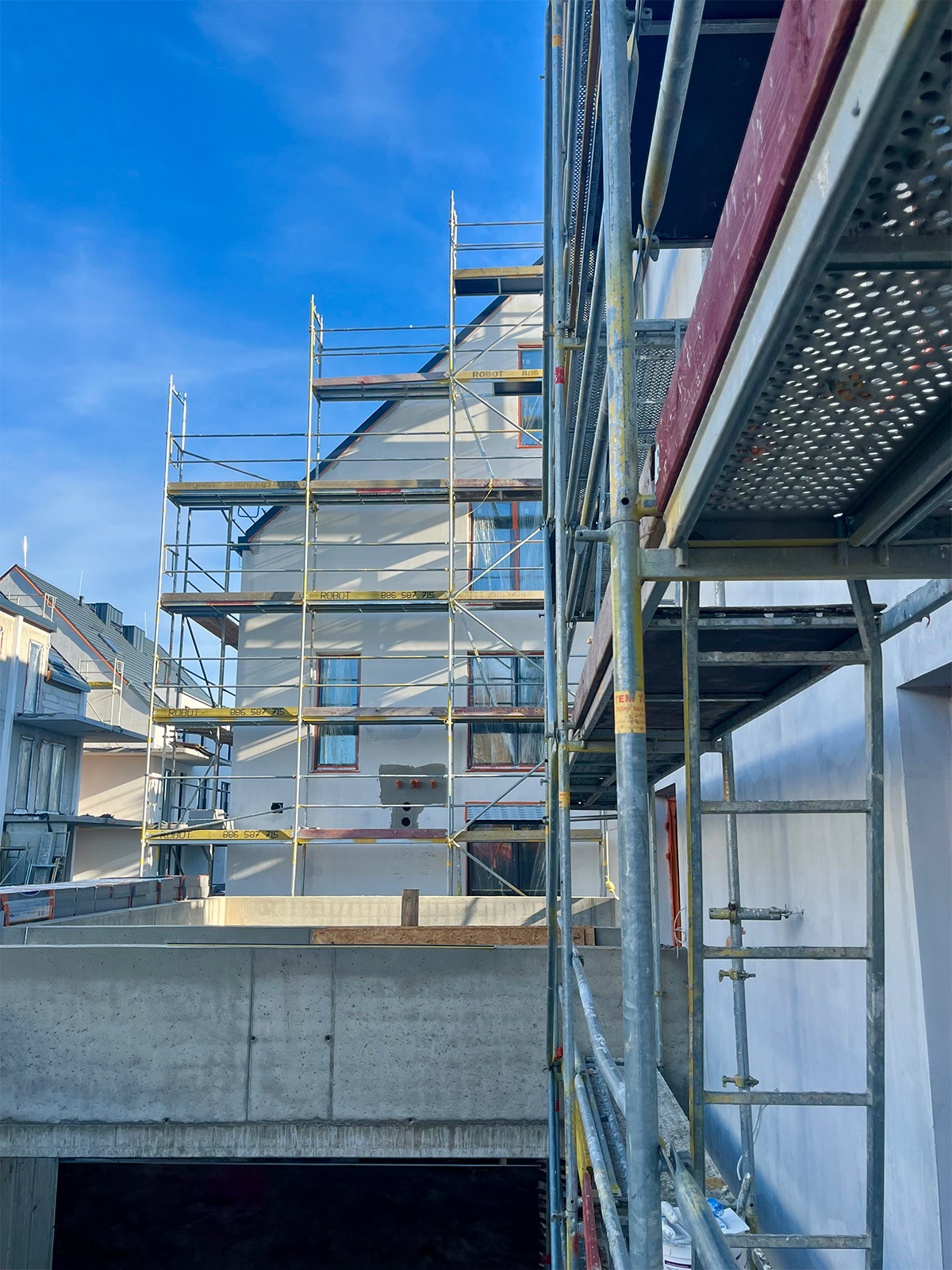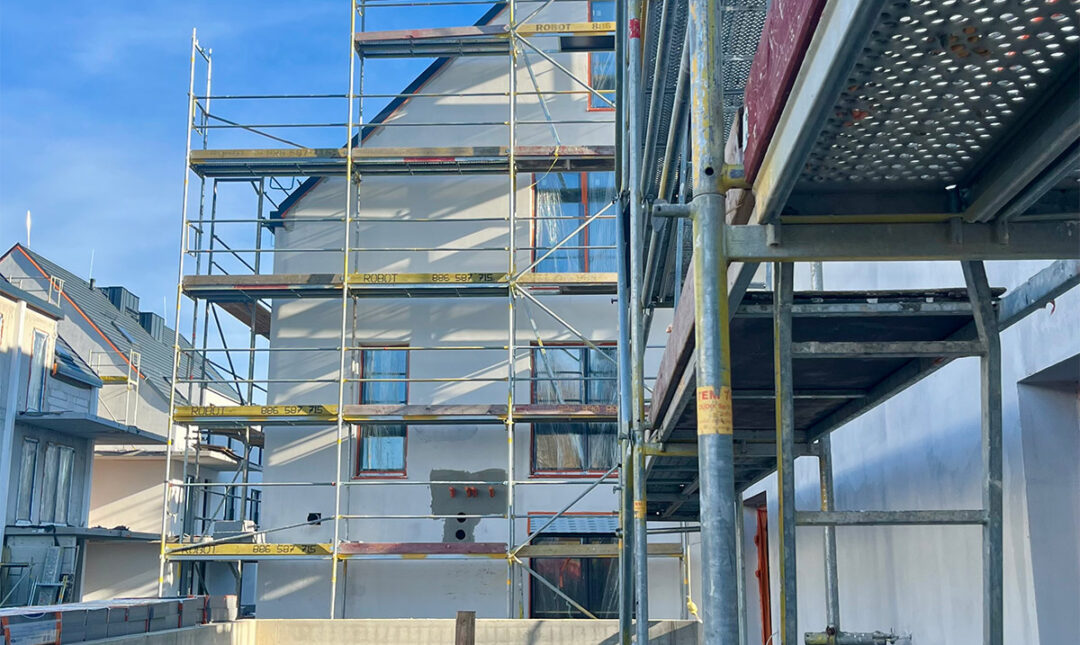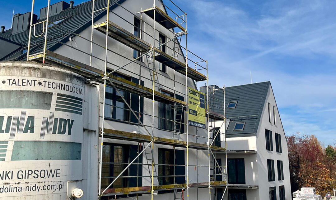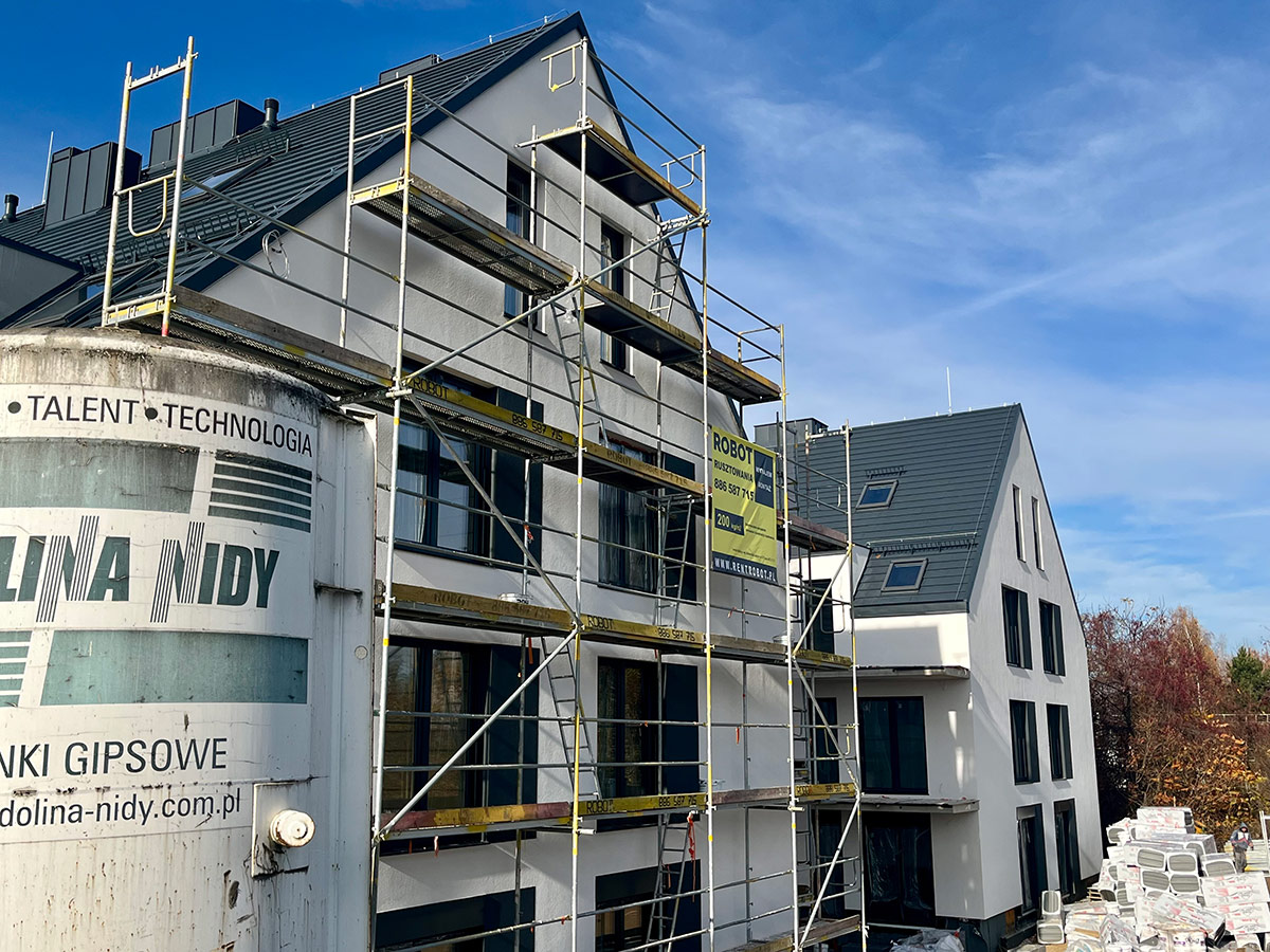 Trwają prace elewacyjne w budynkach A, C, D, E i F.