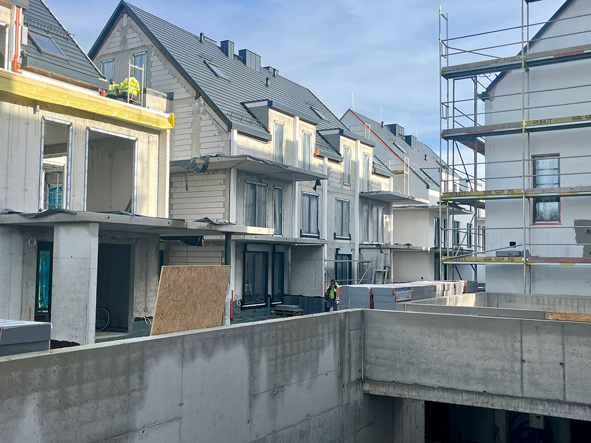 Wykonano konstrukcje ścian nośnych (murowanych i żelbetowych) oraz słupów na wszystkich kondygnacjach – od parteru po antresolę – we wszystkich budynkach. Zrealizowano także wszystkie stropy oraz elementy wieńców, belek kalenicowych i ścian poddaszy.