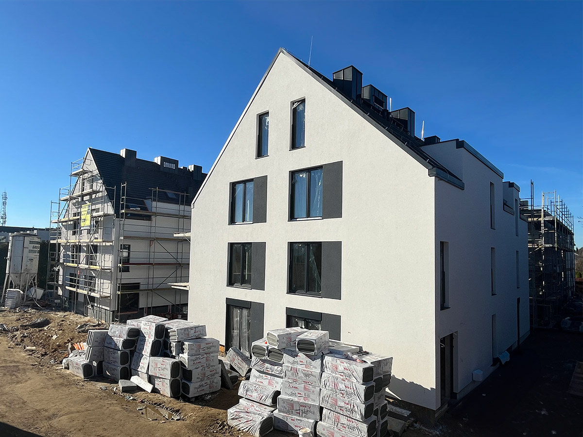 Trwają prace związane z wykonaniem hydroizolacji stropu nad garażem oraz tarasów we wszystkich budynkach.